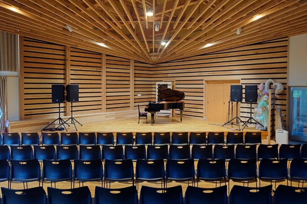 ガラス張りで明るく開放的な空間が広がる、予約制音楽ホール2024年4月OPEN! 季節の変化や時間の移り変わりを感じながら音楽に触れることのできる当ホール。 椅子席で最大1…